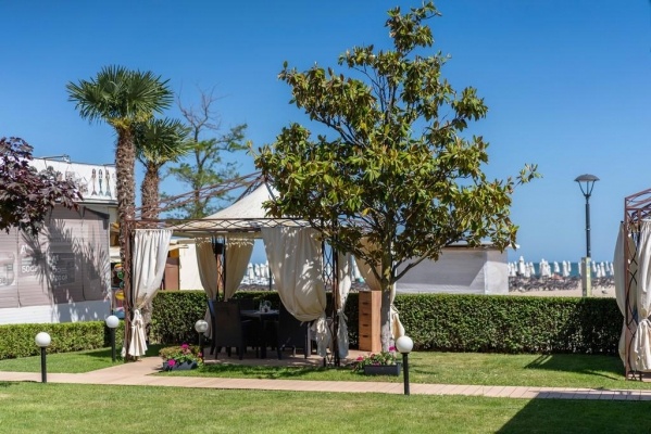 STRAND: közvetlenül a szálloda előtt, sétánnyal elválasztva o napernyők és napozóágyak térítés ellenében
