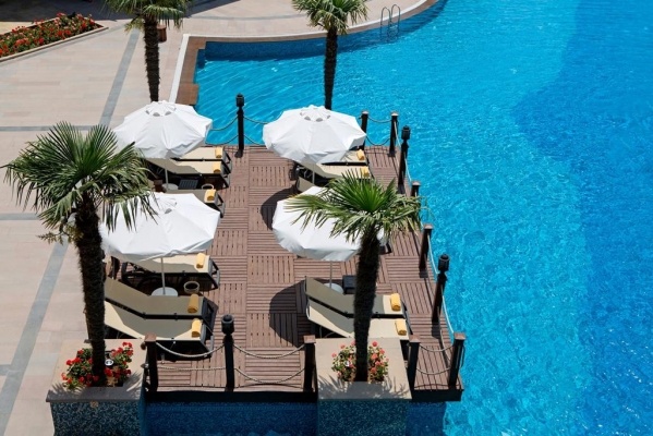 All inclusive ellátás, mely 07:00-21:00 között vehető igénybe és az alábbi szolgáltatásokat tartalmazza: reggeli, ebéd, vacsora a központi étteremben svédasztalos rendszerben, délutáni snack, délutáni tea, kávé és sütemény, éjjeli snack (23:00-01:00). A gyermekeknek az étkezések ideje alatt gyermekbüfé van kialakítva. A főétkezéseknél diétás ételeket kínáló sarok található. A bárokban és a főétkezéseknél a helyi alkoholos és alkoholmentes italok, néhány import ital 00:00-24:00 között térítésmentesen fogyaszthatók. Bizonyos import italok, prémium kategóriájú italok, energia italok, valamint a'la carte étterem szolgáltatásai térítés ellenében állnak rendelkezésre.