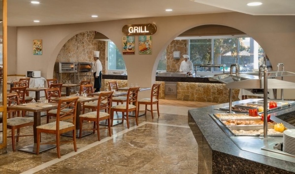 Ellátás: o Büféétterem Svédasztalos rendszerben fogyaszthatja el reggelijét, ebédjét vagy vacsoráját. A menü minden nap tartalmaz helyi és nemzetközileg ismert ételeket is. o Medencebár Kültéri, medenceparti bár, ahol napközben frissítőket, egyszerűbb ételeket, nassolnivalókat és különböző italokat fogyaszthat. Délben egy könnyű ebéd elfogyasztására is lehetősége van. Az All Inclusive ellátást választó vendégek korlátlanul fogyaszthatnak itt, viszont fejenként egyszerre csak egy ételt és egy italt kérhetnek. o Lounge bar A hotel előcsarnokábankerült berendezésre ez a hangulatos bár, ahol kényelmesen elfogyaszthatja kedvenc italát. Az All Inclusive ellátást választó vendégek korlátlanul fogyaszthatnak itt is, viszont amennyiben 23:00 óra után rendel és/vagy olyan italt, ami nem szerepel az All Inclusive listán, felárat számolnak fel.o Dress code: uraknak vacsoraidőben hosszúszárú nadrág és legalább rövid ujjú felsőruházat viselése kötelező.