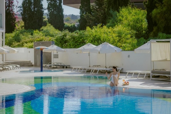 Étkezés: Félpanzió, büfé reggelivel és büfé vacsorával. A főétkezések során széles választék várja a vendégeket, beleértve a helyi ciprusi fogásokat és a nemzetközi konyha kedvenceit is. A vacsora friss salátákat, húsokat, halakat és tésztákat tartalmaz, kiegészítve különféle desszertekkel, helyi gyümölcsökkel és süteményekkel. Felár ellenében all inclusive ellátás foglalható, benne: reggeli, ebéd és vacsora, napközben snack ételek és szendvicsek, korlátlan italfogyasztás 10-23 óra között. Az italválaszték pohárban felszolgálva, a szálloda által meghatározott helyi és alkoholos és üdítőitalokra, vízre és gépi kávéra vonatkozik. Az import és palackozott italok fogyasztása térítéshez kötött