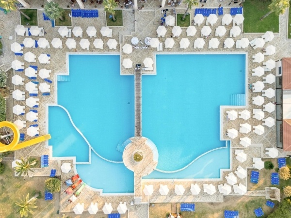 A 2024 telén teljesen felújított, népszerű szálloda csendes helyen, közvetlenül egy szép, lassan mélyülő, homokos strand mellett található, kb. 800 méterre a nyüzsgő Roda üdülőhely központjától, ahol számos vásárlási és szórakozási lehetőség áll rendelkezésre. A létesítmény egy főépületből és a nagy kertben található bungalókomplexumból áll. Különösen gyermekes családoknak ajánljuk.
