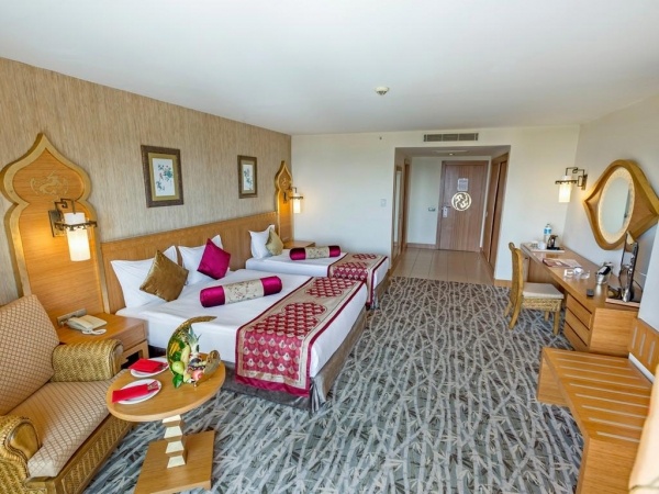 SZOBÁK: 567 szoba o erkély o központi légkondicionálás o hajszárító o telefon o műholdas TV o minibár (naponta frissítve üdítőkkel és sörrel) o vízforraló o kávé- és teafőző szett o papucs o széf o köntös térítés ellenében o Superior standard szobák: kb. 40 m?, max. 3+1 fő részére, kilátással a tengerre, a tájra vagy oldalról a tengerre néző kilátással o Kétlégterű családi szobák: kb. 60 m?, max. 4 fő részére, 2 hálószoba összekötve, kilátással a tengerre vagy a tájra o Duplex családi szobák: kb. 60 m?, max. 4 fő részére, földszinten és emeleten elhelyezkedő hálószobák, 2 fürdőszoba, kilátással a tengerre vagy a tájra o King suite: kb. 100 m?, max. 4 fő részére, 2 hálószoba és 1 nappali