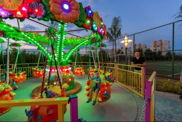 - Medence 2.300 nm-en napernyőkkel és napozóágyakkal, félolimpiai medence, relax medence (csak felnőtteknek), aquapark 8 felnőtt és 3 gyermekcsúszdával, 2 gyermekmedence, 12 étterem, 8 bár, nappali és esti animációs programok, esti show-műsorok, tánc- és musicalestek, alkalmanként élő zene, diszkó tematikus partikkal, vidámpark, miniklub (4-12 éves korig), játszótér, minikosárlabda, minidiszkó, step aerobik, reggeli torna, táncleckék, asztalitenisz, boccia, strandröplabda, vízi torna, darts, vízilabda, fitneszterem, multifunkcionális sportpálya, tenisz (napközben) felszereléssel, minifutball, szauna, gőzfürdő, törökfürdő, WIFI a szobákban és a lobbyban.
