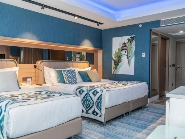 SZOBÁK: 457 szoba o erkély vagy terasz o központi légkondicionálás o hajszárító o telefon o TV o minibár naponta töltve (palackozott víz, ásványvíz, üdítők és sör) o vízforraló o kávé- és teafőző szett o széf o köntös térítés ellenében o wifio Superior standard szobák: kb. 36 m?, max. 3+1 fő részére, kilátással a tájra, a tengerre vagy oldalról tengerre néző kilátással o Családi duplex szobák: kb. 48 m?, max. 4 fő részére, 2 hálószoba, kilátással a tengerre vagy a tájra o Junior suite: kb. 70 m?, max. 4 fő részére, 1 hálószoba és 1 nappali, jakuzzival o Lagúna standard szobák: kb. 54 m?, max. 3+1 fő részére, 1 hálószoba, közvetlen medencekapcsolattalo Lagúna családi szobák: kb. 84 m?, max. 4 fő részére, 2 hálószoba és 1 nappali, közvetlen medencekapcsolattal o Lagúna nászutas szobák: kb. 50 m?, max. 2 fő részére, 1 hálószoba, közvetlen medencekapcsolattal