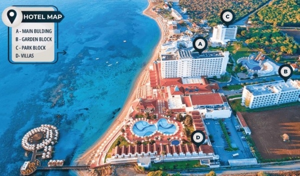 Fekvése: Ciprus északi, a törökök által lakott részén, Famagusta központjától kb. 8 km-re épült, hatalmas 65 hektáros területen (főépület, melléképület és villák) elhelyezkedő igen népszerű és nagy visszatérő vendégkörrel rendelkező ultra all inclusive szálloda, közvetlenül a lassan mélyülő finomhomokos tengerparton található. A szálloda neve is a közeli Salamis ókori város emlékét őrzi, melynek lenyűgöző romjai gyalogosan is könnyen megközelíthetők. Kivételes tengerparti elhelyezkedése, kiterjedt szolgáltatásai és családbarát légköre miatt a hotel ideális választás pihenésre, feltöltődésre, családi nyaralásra vagy akár luxus üdülésre is. A városközpont könnyedén elérhető a szálloda által üzemeltetett buszjárattal. Larnaca nemzetközi repülőtér kb. 65 km-re, a transzferidő határátkeléstől függően kb. 1,5-2 órát vesz igénybe. A Salamis Bay Conti Resort a klasszikus török vendégszeretet, a modern szolgáltatások és a tengerparti luxus tökéletes kombinációja. Ajánljuk családoknak, pároknak, de akár nagyobb csoportoknak is, akik egyszerre vágynak kényelemre, szórakozásra és tengerparti élményekre.