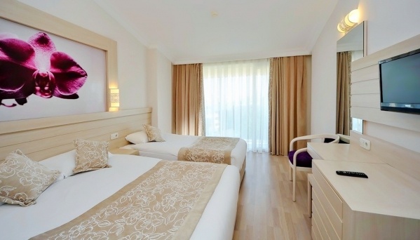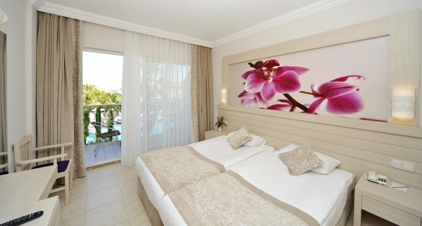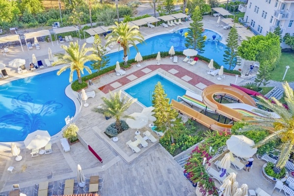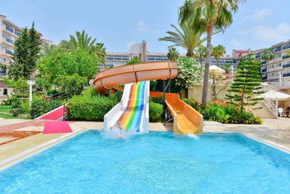 A főépületből és két kisebb épületből álló, szépen kialakított, kényelmes szállodában hatalmas medencés rész található csúszdákkal. A Side történelmi központja közelében fekszik, mégis nyugodt helyen, a Kék Zászló díjjal kitüntetett, homokos strand mellett. Minden korosztály számára ajánljuk.
