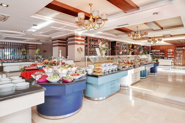 - All Inclusive: minden étkezés büférendszerben, kávé, tea és üdítők reggelinél, üdítők és helyi palackozott alkoholos italok ebédnél és vacsoránál, éjszakai snack-ételek 23:00 és 23:30 óra között, snack-ételek a snack-bárban 12:0 és 15:00 óra között, tea, kávé, kekszek és fagylalt 15:00 és 16:00 óra között, gözleme 11:00 és 16:00 óra között, helyi alkoholos és alkoholmentes italok a strandbárban és a pool-bárban 10:00 és 17:00 óra között, a lobby-bárban 10:00 és 24:00 óra között. Az All Inclusive szállodák szolgáltatásai bizonyos részletekben szállodánként eltérhetnek.