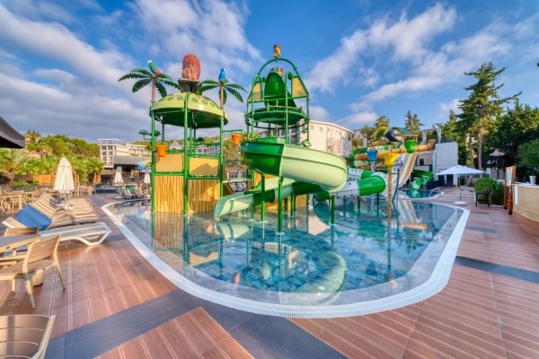 SZOLGÁLTATÁSOK:o medencék napernyőkkel és napozóágyakkal o csúszdák o főétterem o bárok o nappali és esti animációs programok o élőzene o amfiteátrum o fitneszterem o törökfürdő o szauna o gőzfürdő o asztalitenisz o darts o step aerobik o zumba o pilates o vízi torna o vízilabda o TV-sarok