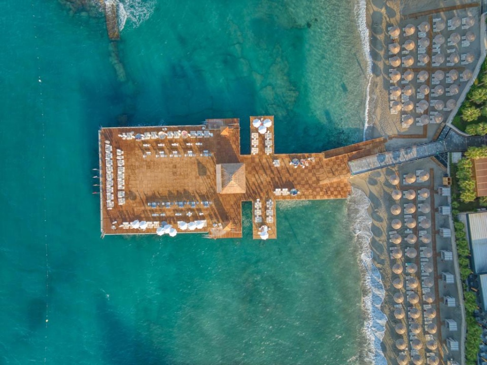 TENGERPART: közvetlenül a szálloda mellett • homokos-kavicsos • napernyők, napozóágyak és strandtörölközők ingyenesen • privát pavilonok térítés ellenében