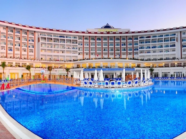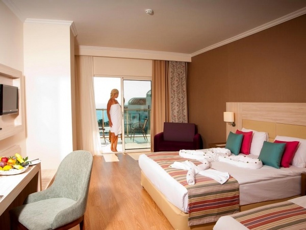 SZOLGÁLTATÁSOK: kültéri medencék napernyőkkel és nyugágyakkal o beltéri medence o csúszdák o főétterem o bárok (lobby, medence, tengerpart) o nappali animációs programok o esti show o diszkó o fitneszterem o darts o asztalitenisz o törökfürdő o szauna o gőzfürdő o wifi o térítés ellenében: SPA-központ o törökfürdős kezelések o masszázs o fodrászat o üzletek o orvosi ügyelet o mosoda o autóbérlés o vízi sportok a strandon o konferenciatermek