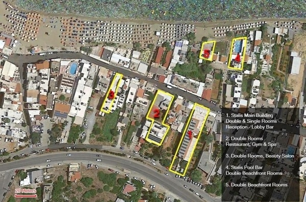 A szálloda közvetlenül a népszerű Stalida központjában található. Felújított szobákkal, étteremmel és pool-bárral várja avendégeket. A létesítmény 5 részlegből áll: az elsőben található a recepció és egyes szobák, a másodikban (kb. 50 m-re) a büféétterem, fitneszterem, spa-központ és szobák, a harmadik részlegben (kb. 50 m-re a második épülettől) csak szobák találhatók. A negyedik rész medencével és pool-bárral (kb. 50 m-re található a szálloda fő részeitől) közvetlenül a homokos strand mellett helyezkedik el, az ötödik részleg a medencétől nem messze, közvetlenül a strandon található, és a tengerhez közelebb eső szobákkal rendelkezik. Ideális választás a pihenésre vágyó, de a központ közelségét preferáló utasaink számára, hiszen a közelben helyi éttermek, bárok és üzletek is rendelkezésre állnak.