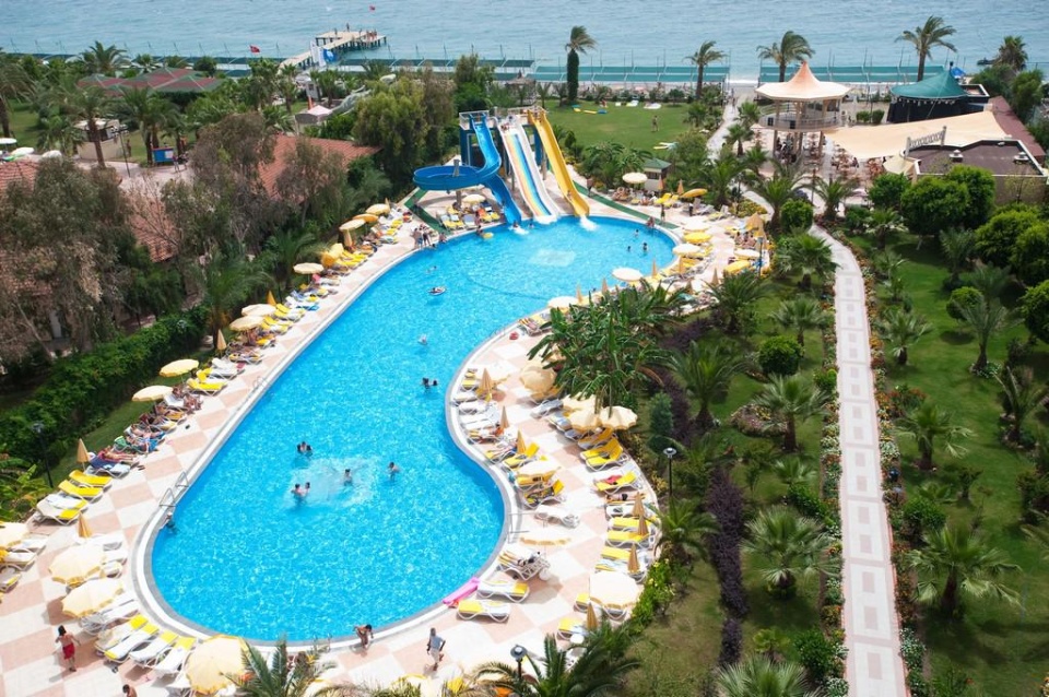 ELHELYEZKEDÉS: Manavgat kb. 25 km • Side kb. 30 km • Alanya kb. 35 km • Antalya repülőtere kb. 90 km • a hotel kb. 10 000 m²-es területen fekszik • mozgáskorlátozottak számára kialakított szoba