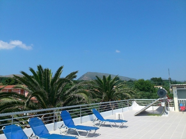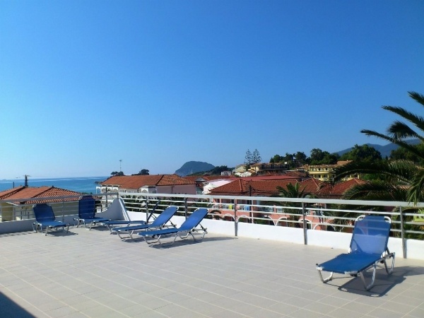 Az apartmanház Laganas csendes részén található, 50 méterre a homokos tengerparttól. A közelben számos étterem, bár, üzlet, Laganas központja kb. 5 perces sétával elérhető. A ház különlegessége az óriási, közös, tetőtéri terasz, ahonnan csodálatos kilátás nyílik a Jón-tengerre.