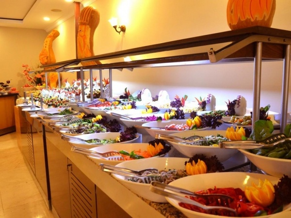 a szálloda központi éttermében.