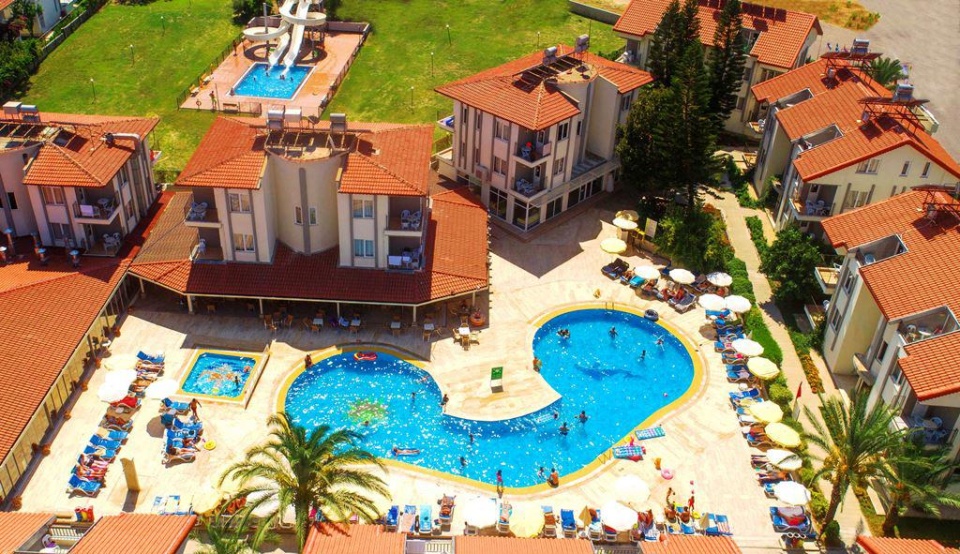 SZOLGÁLTATÁSOK: medencék napernyőkkel és napozóágyakkal • csúszdák • főétterem • asztalitenisz • törökfürdő • wifi