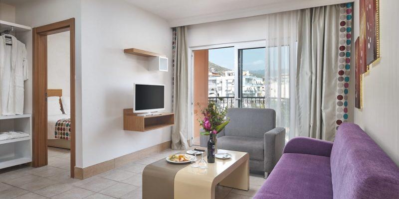 SZOBÁK: 100 szoba • erkély vagy terasz • légkondicionálás • hajszárító • telefon • TV • széf felár ellenében • konyhasarok • hűtőszekrény • vízforraló • wifi • Standard szobák: kb. 22-25 m², max. 3 fő • Családi szobák: kb. 30-35 m², max. 4 fő, 1 hálószoba és 1 nappali • Családi szobák 2 hálószobával: kb. 60-65 m², max. 6 fő