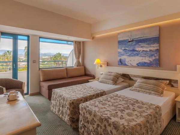 ELHELYEZKEDÉS: Side központjától kb. 10 km o Antalya központjától kb. 80 km o Antalya repülőtere kb. 75 km o a hotel kb. 310 000 m?-es területen helyezkedik el o a közeli városok helyi busszal vagy taxival érhetők el o mozgáskorlátozottak számára kialakított szoba