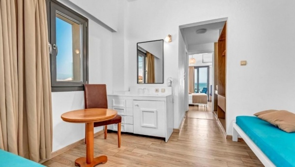 Szobák: minden szoba egyhálószobás (~ 22 m2), kellemes színvilágú, praktikusan berendezett, fürdőszobás, légkondicionálóval, hajszárítóval, hűtővel és Tv-vel felszerelt. A szobákhoz erkély tartozik kertre vagy tengerre néző kilátással. Családi lakosztályok hasonlóan berendezettek és felszereltek, azonban nagyobb alapterületűek (~32 m2), két légteresek (hálószoba 2 ággyal, és nappali kanapéval) és tengerre néző erkéllyel rendelkeznek. Felár ellenében széf a helyszínen bérelhető.