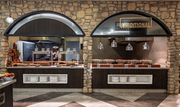 - Ultra All Inclusive: Reggeli, ebéd és vacsora büférendszerben, késői reggeli, éjjeli snackek (00:00-07:00), narancslé a reggelihez, diétás és vegetáriánus ételek, gyermekétterem és vegán sarok a vacsoránál, napközbeni snackek, fagylalt meghatározott időpontban, kávé/tea és sütemények, helyi és néhány import alkoholos és alkoholmentes ital 24 órában, minibár naponta sörrel, üdítőkkel és vízzel feltöltve, a családos részben ezen felül tejet és süteményt is biztosítanak, a'la carte étterem (olasz/ francia/ görög, a tartózkodás során 1 alkalommal, előzetes asztalfoglalással.