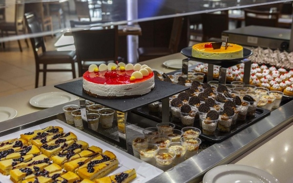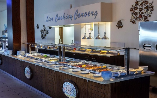 Étkezés: all inclusive ellátás, benne: büfé reggeli (07:30-10:00), ebéd (12:30-14:30) és vacsora (19:00-21:30), snack ételek és szendvicsek (11:00-12:30 és 15:00-18:00 óra között), jégkrémek, korlátlan italfogyasztás 10:00-23:30 óra között. Az italválaszték pohárban felszolgálva, a szálloda által meghatározott helyi és alkoholos és üdítőitalokra, vízre és gépi kávéra vonatkozik. Az import és palackozott italok fogyasztása térítéshez kötött. Minden este választékos tematikus büfé vacsorákkal (olasz, ciprusi, ázsiai, mexikói stb.).