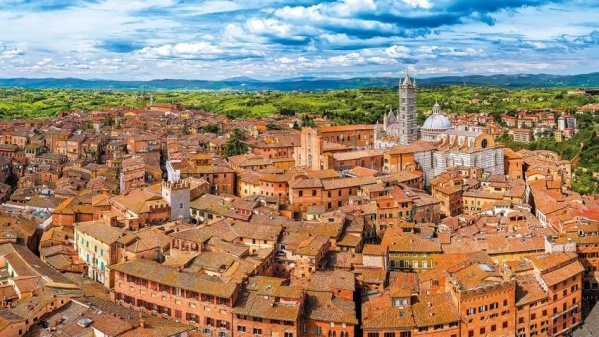 Siena, a három dombon fekvő város Olaszország legkáprázatosabb kincsei közé tartozik. Az ősi város ékkőként illeszkedik az azt körülvevő vidéki tájba. Az egész történelmi belvárost felvette az UNESCO a Világörökségi listájára. Számos pontja olyan, mint amilyen az 1300-as években lehetett - a középkori jelleg megőrzése teszi az egyik leggyönyörűbb olasz várossá. Európa egyik leginkább szemet gyönyörködtető középkori terén, a neves lovasversenyek helyszínén, a Piazza del Campón méltóságteljes gótikus épületek törnek a magasba, melyek a 12. és 15. század között épültek. Ide futnak össze a domboldalról lefutó utcák is. Itt találjuk a 14. századi Palazzo Pubblicót, azaz Városházát is, Siena jelképét. Harangtornya a Torre del Mangia. Helyszínen foglalható fakultatív: borkóstolás. Visszatérés a hotelbe.