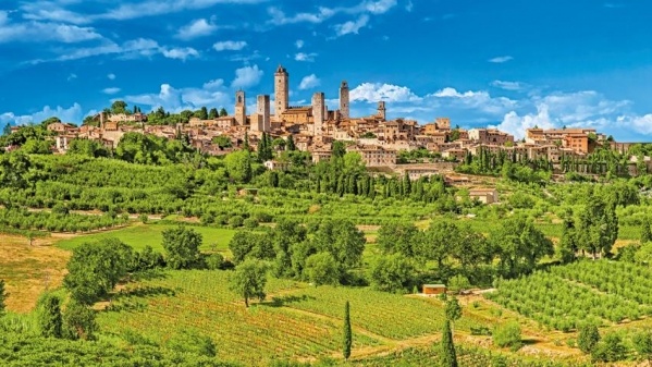 A mai napon első állomásunk Volterra. A városka gyökerei az etruszk időkbe nyúlnak vissza. Gazdag művészeti örökséggel büszkélkedhet, fekvése pedig nagyon festői a toszkán lankákon. A történelmi városközpont részei a középkori Piazza San Giovanni, a Santa Maria Assunta-katedrális, a San Giovani-keresztelőkápolna. A Palazzo dei Priori építését 1208-ban kezdték el, az azonos nevű téren magasodik, mely Toszkána egyik legmesésebb tere. Szabadidő, ebédelési lehetőség. Délután San Gimignano vár ránk, mely az egyik legszebb toszkán település. Az UNESCO Világörökség egyik gyöngyszeme olyan, mintha a középkorba utaznánk vissza Számos tornya miatt Középkori Manhattannek is nevezik. A sok torony közül 13 túlélte az évszázadok viharait, és ma is büszkén magasodnak. Visszatérés a hotelbe.