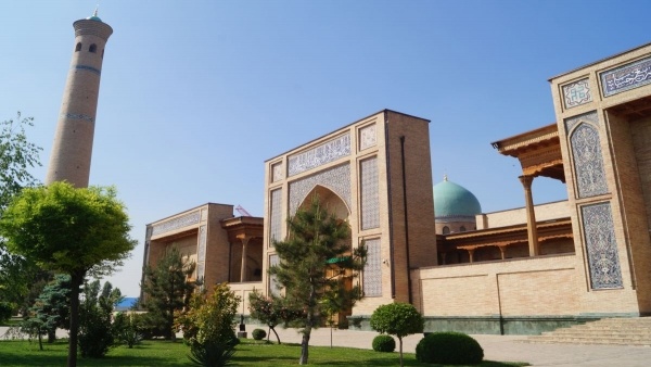 2. nap o TaskentÉrkezés az éjszaka folyamán az üzbég fővárosba, Taskentbe, majd transzfer a szállodába. Reggeli után ismerkedés Taskent látványosságaival: látogatás a XVI. századi Kukeldas (ma is működő) medresze épületében, séta a Hazrat-i Imám téren és környékén: Hazrat-i Imám mecset, Barak kán XVI. századi medreszéje, Kaffál Sasí mauzóleum, egy kora iszlám kori taskenti muszlim szent sírjának meglátogatása, majd a XVI. századi Tilla Sejk mecset és benne a VII. századi Oszmán Korán következik, melyet Timur Lenk hozott magával Szíriából. A világ egyik legrégebbi koránja Mohamed próféta halála után 19 évvel készült, szarvasbőrre írták; az eredeti terjedelem mintegy harmada, 250 oldal maradt fent az utókor számára. Délután a Taskenti Iparművészeti Múzeum (Plovcev palota), Timur Lenk lovasszobra, a taskenti Opera (kívülről) és a Csorszú bazár megtekintése. Vacsora helyi étteremben, szállás Taskentben.