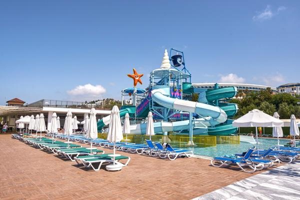 ELHELYEZKEDÉS: Türkler • Alanya kb. 15 km • Antalya repülőtér kb. 90 km • kb. 40 000 m²-es területen fekszik • a közeli városok busszal vagy taxival érhetők el • a szálloda akadálymentesített
