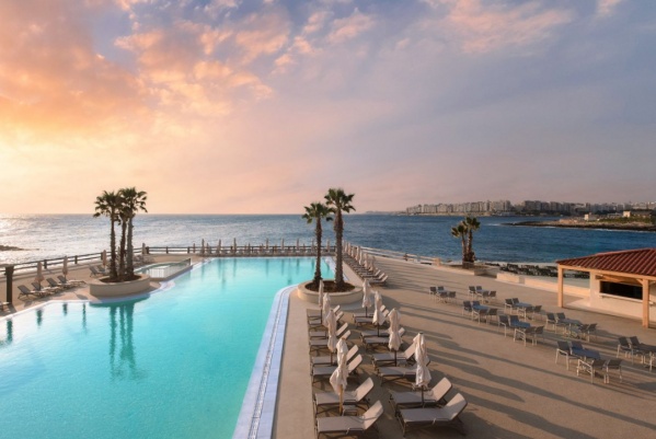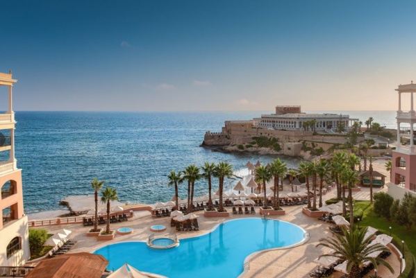 A Málta egyik legkiemelkedőbb szállodájának számító, különösen a nászutasok körében népszerű hotel kb. 500 méterre fekszik saját, festői sziklás strandjától, ahol a vendégek számára térítésmentesen biztosítottak a napozóágyak és napernyők a teljes kényelem érdekében.