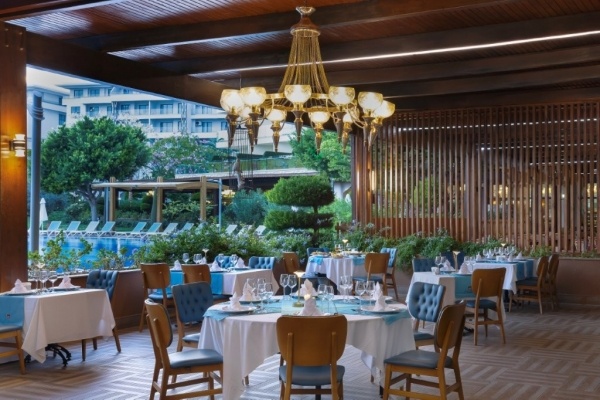 - Ultra All Inclusive: reggeli, ebéd és vacsora büférendszerben, késői reggeli, éjféli leves (23:30-03:00), napközbeni snackek, gözleme, kumpir, gofri és fagylalt meghatározott időpontban, kávé/tea és sütemények, helyi alkoholos és alkoholmentes italok (10:00- 02:00), minibár érkezéskor vízzel és üdítőkkel, később csak vízzel naponta feltöltve, 2 a'la carte étterem (olasz és török a tartózkodás során 1 alkalommal, előzetes asztalfoglalással).