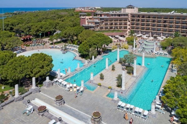 A csodálatos környezetben, golfpályák közelében épült 5 csillagos szálloda az antalyai repülőtértől 40 km-re, Belek turisztikai központjától 5 km-re terül el, 130.000 nm-es területen, egy pineafenyvesekkel körülvett, gyönyörű kertben. A hotelt saját, homokos-aprókavicsos partszakaszától egy folyó választja el, így a strandra a szálloda kertjén keresztül, egy hídon átkelve lehet eljutni. Az egyedi hangulatú, lenyűgöző komplexumban könnyűszerrel érezhetjük úgy, mintha egy óvárosban nyaralnánk. Oszlopsorral szegélyezett, ókori romvárost idéző főmedencéje és a számtalan program egyedülálló kikapcsolódást kínál kicsiknek és nagyoknak, a nyugodt pihenésre vágyó vendégek pedig kellemesen elnyúlhatnak a ,,Secret Garden"-ben, ahol élvezhetik a relax medencét és a természet nyugalmát. A szálloda a gyermekekről sem feledkezik meg; őket lassan mélyülő medence, képzett animátorok és 5.500 nm-es miniklub várja. A golfozni vágyók a szálloda által üzemeltetett kisbuszokkal térítésmentesen juthatnak el a közeli Nobilis és Gloria golfklubokba.